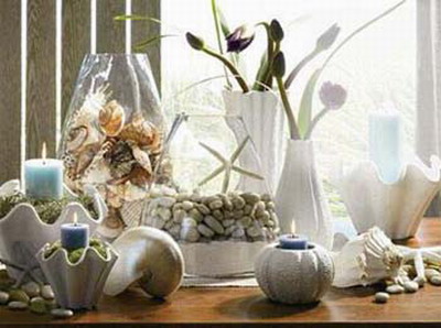 房間陳設的桌、幾、柜、櫥之上,擺出幾件富有生活氣息的瓷、泥、石膏、貝殼等雕塑品,或在室內裝點些實用工藝美術品,如燈具、茶具 、筆架……甚至是逗人喜愛的玩具,定會意趣盎然,也能夠表現主人的文化素養。這些擺設,力求精致健康,造型別致,顏色純凈。