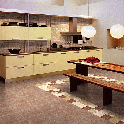 多種規格的組合:它的特點是選擇幾何尺寸大小不同的多款地瓷磚,按照一定的組合方式成組地鋪裝。由于地磚由不同大小組合加之組合方式多,使地面的幾何線條立刻發生變化,在秩序中體現著變化和生動。