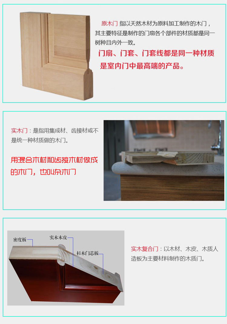 用戶在市場上購買木門時,會發現許多商品都有實木門的標稱,但其實我們所說的原木實木門和所謂工藝木門、復合木門、雜木門等都有有區別的。通過下面的圖片,我們就可以很清楚的指導區別在哪里了: