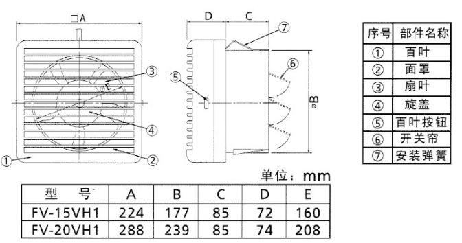 排氣扇換氣扇 6寸墻壁百葉式AE-15A