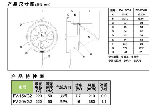 排氣扇換氣扇 6寸墻壁百葉式AE-15A