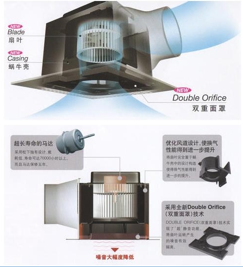 2、當安裝換氣扇的地方裝有天花板,且天花板上方預留裝有排往室外的管道時,應該選用管道式換氣扇,利用其較高的風壓往外排氣。