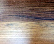 4、從外觀上看,表面呈溝面、麻面的是真,顯柔面的為假。正常強化木地板應是以高密度纖維板為基材,國際標準厚度為8mm,而假的是沒有耐磨層的三聚氰胺裝飾板。