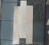 步驟二:鋪貼人造文化石之前務必先將人造文化石在平地上排列搭配出最佳效果后再排列次序鋪貼。(避免相近尺寸、形狀、顏色的人造文化石相鄰)。