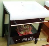 目前,市場上浴室柜所選用的主流基材是防水中纖板,這是將經過挑選的木材原料粉碎成粉末狀后,經特殊工藝加工而成的一種“剛性”板材。防水性能優于普通纖維板,是高檔浴室柜的首選。