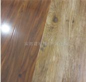 4、從外觀上看,表面呈溝面、麻面的是真,顯柔面的為假。正常強化木地板應是以高密度纖維板為基材,國際標準厚度為8mm,而假的是沒有耐磨層的三聚氰胺裝飾板。