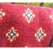 3.機織提花地毯:以紡織提花裝置機械生產的類似手工栽絨地毯的經緯編織栽絨地毯。又稱紡織地毯,是機制地毯的主要品種。