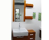 浴室柜的防潮性是指相對濕度達到85%的良好使用性。質量過硬的產品在充分通風情況下,濕度短時達到95%也沒有問題。箱體板在浴室家具中占很大部分,想選擇好的浴室家具,就不能馬虎對待箱體板的防潮問題。浴室家具在選材上基本以實木、防潮板、密度板為基材,表面都做了聚酯漆涂層防水處理,具有較強的防水、防潮性能。需要注意的是,在浴室里選擇箱體板不僅要防水防潮,保持良好的透氣性,挑選符合國家E1標準的環保材料才是保護家人健康的關鍵。