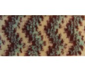 6.藏毯:藏毯打結法是在一個栽絨結里具備一個重疊的打結圈的栽絨結,即手工連環結,俗稱“重疊連環扣”,其打結程序可歸納為“挽頭兒割絨”,即將絨紗同時纏繞在經線和編織桿上,連續操作,挽到一定長度才割絨一次,割絨同時抽出編織桿,比傳統的“8”字扣的每頭兒必砍,明顯減少勞動強度,提高勞動效率。地毯的厚度由鐵桿的直徑決定,因此毯子厚薄控制自如。因藏毯打結法的特點,毯面可割絨,也可圈絨,可以滿足不同風格要求。用藏毯打結法織出的地毯,毯面形成自然橫向條紋,看上去重重疊疊,層次分明;毯背疙瘩有致。