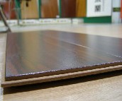 4、從外觀上看,表面呈溝面、麻面的是真,顯柔面的為假。正常強化木地板應是以高密度纖維板為基材,國際標準厚度為8mm,而假的是沒有耐磨層的三聚氰胺裝飾板。