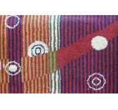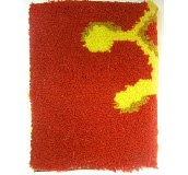 6.藏毯:藏毯打結法是在一個栽絨結里具備一個重疊的打結圈的栽絨結,即手工連環結,俗稱“重疊連環扣”,其打結程序可歸納為“挽頭兒割絨”,即將絨紗同時纏繞在經線和編織桿上,連續操作,挽到一定長度才割絨一次,割絨同時抽出編織桿,比傳統的“8”字扣的每頭兒必砍,明顯減少勞動強度,提高勞動效率。地毯的厚度由鐵桿的直徑決定,因此毯子厚薄控制自如。因藏毯打結法的特點,毯面可割絨,也可圈絨,可以滿足不同風格要求。用藏毯打結法織出的地毯,毯面形成自然橫向條紋,看上去重重疊疊,層次分明;毯背疙瘩有致。