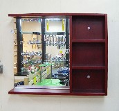 所謂浴室鏡柜通常是指整體浴室柜中的一部分,如圖可見,一般以懸掛安裝在墻面上為主要的形式,柜身采用中密度防潮板,柜門表面使用工業膠熱壓一面玻璃鏡面。也有的產品通身采用不銹鋼,在柜門使用高反光的鏡面不銹鋼形成鏡子的效果。