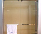 2、鋼化玻璃:一般人認為鋼化玻璃優于強化玻璃,實為誤解。在西方國家稱前者為Tenpered Glass或者Toughened Glass所指皆同。因其強度定意皆為一般玻璃的4~5倍。惟需注意的是某些廠家為了降低成本,采用熱增強玻璃或半鋼化玻璃(成本可降低至200~300左右一平方),其強度僅為一般玻璃的1~2倍,另由于多數手工工廠生產工藝的限制,玻璃密度達不到均勻,容易導致自然狀況下的爆裂,且其破裂時與一般玻璃并無二致。無法與前者相比。淋浴房門所使用的玻璃需達到安全玻璃的標準,即需通過撞擊、溫差、破壞等測試后方能應用。另外,一般人認為玻璃越厚越好,其實不然,只要能通過前者的測試,薄的玻璃反而有利于產品等使用壽命(玻璃越重對滑輪和鉸鏈的負擔越大)及安全性。一般而言,有框玻璃門采用3~5mm的鋼化玻璃,無框玻璃采用6~8mm的玻璃就已足夠了。