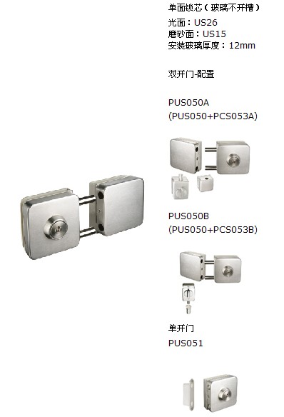玻璃門鎖 腰鎖不銹鋼單開PUS-051