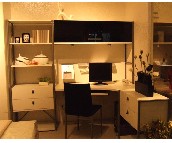二、 電腦桌應該用料考究,設計新穎,布局合理。電腦桌應盡量選用質地好且耐磨的材料,螺釘及相關部件應用強度好的鐵釘。 電腦桌的設計也很重,桌面高度,鍵盤桌面,電源電纜走線等都要設計合理,符合工作習慣和身體健康的需要。電腦桌的高度很重要,當我們坐在桌前,兩手自然放在桌面上,肘部正好彎成90℃,即是合適你用的電腦高度了。 鍵盤小桌面一般在桌面下,可以抽出,節約空間,但在鍵盤前應保留足夠的空間,以支撐手腕,這樣會使操作者在操作時舒適順暢。電源電纜走是否整齊、安全及順暢,也將影響計算機及外設的正常運行,如果桌面上設計有兩個方孔,讓電源、電纜線分別穿下來,這樣看起來,相當整潔而且減輕了計算機信號間的磁場。