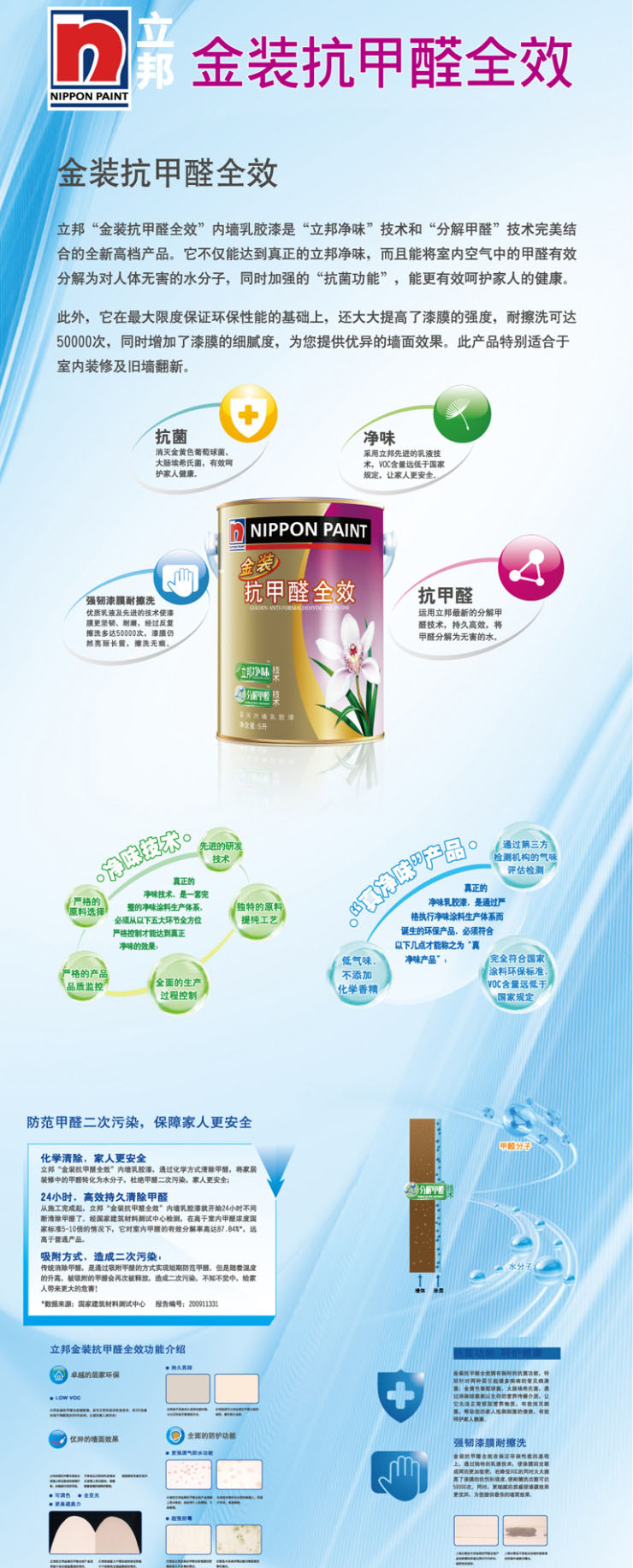 一看就是看外包裝和環保檢測報告。一般乳膠漆的正面都會標注名稱、商標、凈含量、成分、使用方法和注意事項。注意生產日期和保質期,各品牌乳膠漆標注的保質期1年到5年不等,盡可能購買近期生產的產品。現在一般的品牌乳膠漆都有環保檢測報告或檢測單。消費者看清楚檢測單能對乳膠漆的環保性能有一個詳細的了解。檢測報告對VOC、游離甲醛以及重金屬含量的檢測結果都有標準。國家標準VOC每升不能超過200克;游離甲醛每公斤不能超過0.1克。