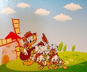 2.把最上面的一張墻紙左端拉至桌邊鋪平,右端任其從桌子另一邊垂下。