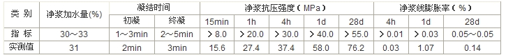 粘結強度:4h大于8㎏f/㎝2,1d大于15㎏f/㎝2。抗 滲 性:凈漿試體水養3d。在10㎏f/㎝2水壓下不透水。