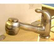 2、看手感,上等水龍頭主要部件殼體一般是由黃銅鑄造的,黃銅純度越高電鍍質量越好,表面電鍍層越不易腐蝕。次等產品會在某些地方使用合金材料和工程塑料代替以降低成本,這樣使用壽命和質量會大打折扣。建議選購時盡量選用黃銅材料制作的水龍頭。黃銅比重較大,選購時可以估重,黃銅重實,拿在手上沉甸甸的,能感覺到重心的存在。合金材料密度較低,感覺松軟,重心均勻。工程塑料拿在手上輕飄飄的。