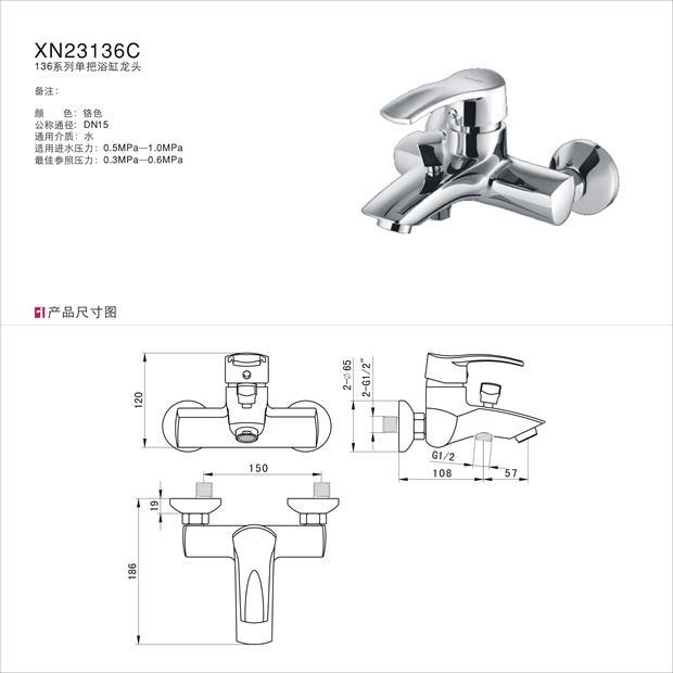 浴缸淋浴龍頭 單把三聯沐浴器3521-271