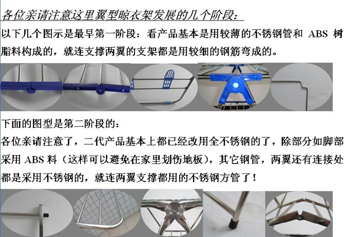 親們請注意: 型號 品牌 主材 尺寸 凈重 包裝重量 中軸連接是采用雙軸鈦合金8字環連接器,更結實耐用且靈活。這可是有專利的。請認準麗人鋼印標志。衣架主體都是用30*20的301不銹鋼方管,更粗更結實更耐用。兩翼使用19*0.5的不銹鋼圓管,豪華型的是16根,超豪華型的18根。
