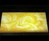 透光石的性能及應用:透光石(又稱“人造石透光板”)是一種新型的復合材料,因其具有無毒性、無放射性、阻燃性、不粘油、不滲污、抗菌防霉、耐磨、耐沖擊、易保養、拼接無縫、任意造型等優點。具體運用于各種建筑物的透光幕墻,透光吊頂,透光家具,高級透光燈飾等,安裝后重量公為天然石材1/4左右,能較大幅度減輕建筑物自重,安裝簡便施工環境整潔,比天然石材更有優勢,是當今建筑行業中最時尚的裝飾材料。人造石透光板的產品大小規格、薄厚可任意調制,可切割、可鉆孔、可粘接可生產半透光、全透光產品。主要原材料:高分子樹脂(液體),分量輕:8 - 12 kg/m2, 規格:最大尺寸長邊不超過3.2m,短邊不超過1.3m 。厚薄:因其材質特點厚度不可小于5mm,最厚可達到20mm。