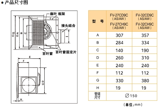 型 號:FV-32CD9C 外觀尺寸:380×380mm 開孔尺寸:320mm×320mm 功 率:42W 風 量:430m3/h 電 壓:220V 噪 音:36db 凈 重:5kg
