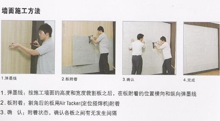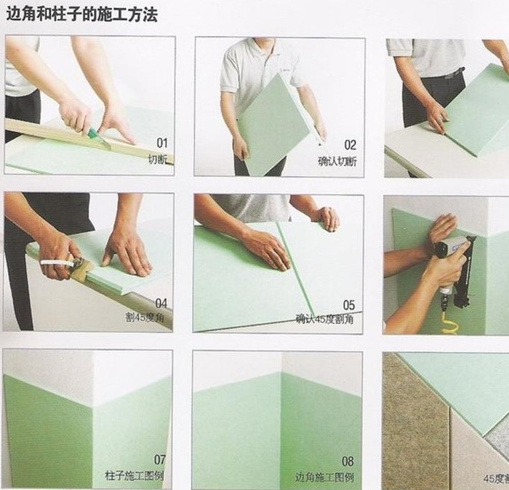 聚酯纖維裝飾吸音板,可做陰、陽角處理,其方法與鋁塑板施工方法一樣。
