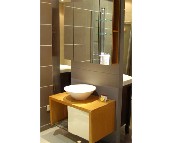 浴室柜的面材可分為天然石材、人造石材、防火板、烤漆、玻璃、金屬和實木等;基材是浴室柜的主體,它被面材所掩飾。