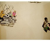 1.先將墻面找平,打膩子,膩子干后將墻面用砂紙磨平,底層涂上膠水,起防潮、致密墻面的作用。