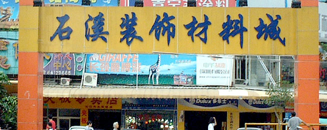 廣州石溪裝飾材料城是座落在海珠區工業大道南,由廣州市越和創發物業發展有限公司成功開發的,是"河南"規模較大的裝飾材料專業市場。數百家國內外品牌專賣踴躍進駐,由于成本低,價格優,因而成為廣州市南面消費者購物首選取。地處眾多新樓盤的圈中,緊接內、外環路,靠近洛溪大橋,鶴洞大橋,輻射珠江三角洲,交通四通八達。經營面積達1.8萬多平方米,商鋪380間,1000平方米的大型停車場。